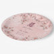 Oriental peach blossom / plum blossom, spring flowers in shades of pink with a double happiness symbol in calligraphy on a soft watercolor background, chinese wedding party paper plate.