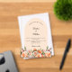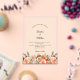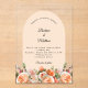 For an elegant and romantic wedding. A clear, transparent background decorated with orange, peach and pink florals. Arch shaped frame. Personalize and add your names and details.