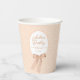Peach Bow Baby Shower theme. Summer peach hue for a stylish, fun, and cute baby shower. Peach-y buff background with polka dots, big gingham bow in rustic style, with eye catching typography. Create a peachy buff colour, bow-themed shower with dainty details. Dovetails perfectly with big bows, balloons, and creative drinks and foods.