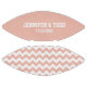 Bride and groom's custom football done in pale peach, on one half of the top and a white and peach chevron pattern, on the other half of the top. Personalise the bold white text the bride and groom's names and wedding date. Lovely gift idea for the football fan couple.