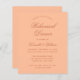 A simple rehearsal dinner invitation with a modern nuance of peach. It has just terracotta brown text on peach background. The words "Rehearsal Dinner" and the name are written in an elegant calligraphic script.