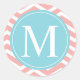 Peach Chevron Blue Monogram Classic Round Sticker