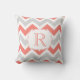Peach Coral, Grey, and White Chevron Pattern Monogram Pillow. Personalise with your own initial.