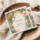 A romantic Art Nouveau wedding design featuring flowing peach and cream florals, interwoven with soft green botanical scrolls. This elegant illustration surrounds a vintage-style layout with graceful curves and ornate detailing, perfect for couples seeking a classic yet artistic wedding aesthetic inspired by nature and antique beauty.