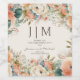 Elegant peach and cream-coloured watercolor floral with greenery custom "Thank you" wedding wine bottle labels. Personalised with the couples' monogram, names, wedding date, and location. Contact me for assistance with your customisations or to request additional matching or coordinating Zazzle products for your wedding day or events.