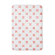 Peach cross stitches on white bath mat