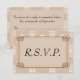 A very elegant, custom wedding RSVP announcement in soft peach pink, part of the ''Peach Damask'' matching set of wedding stationery featuring a salmon pink / peach and white damask pattern with gold ornament.