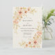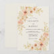 This design features delicate watercolor florals in shades of peach and apricot. Soft botanical elements and muted greenery create a romantic and ethereal aesthetic against a warm cream backdrop. Lush ranunculus and dainty wild roses offer a timeless, natural look perfect for a spring event.