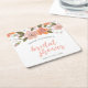 Peach Delicate Floral Bridal Shower Square Paper Coaster