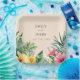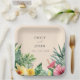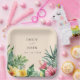 Peach Elegant Watercolor Tropical Flowers Wedding Paper Plate