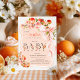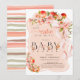 Peach Floral Bow Little Cutie Baby Shower Invitation