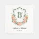 These beautiful watercolor cocktail napkins featuring a crest with multi-hued peach flowers and wispy natural greenery, the bride and groom's initials and their wedding date would be perfect for your wedding reception. They're traditional and classic while being fresh, modern and contemporary. They'll be gorgeous on the tables.