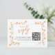 This wedding reply card features a simple and elegant design with delicate watercolor peach floral accents and graceful calligraphy script. Guests can easily RSVP through the included QR code linking to your wedding website, making responses effortless. Perfect as a response enclosure card, it suits spring, summer, or fall weddings beautifully. A modern yet timeless addition to your stationery suite for a seamless guest experience.