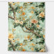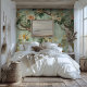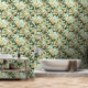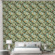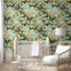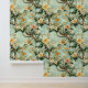 Peach Floral on Green Background Chinoiserie Style Wallpaper