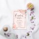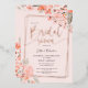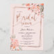 An elegant Modern script trendy bridal shower invitation with a cool painted peach coral and green floral watercolor with real rose gold foil geometric frame border terrarium style on light pastel pink.