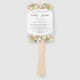 Beautiful watercolor floral arrangements in peach, orange, grey and green, back features solid dove grey background, wedding program fans. Personalise text, customise font style, colour and size.