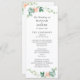 A floral theme design with peach flowers and green foliage. You can personalise the text and colours on this wedding program template.