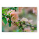 Greeting card with a beautiful select focus nature photo of some peach coloured blossoms from a Flowering Quince bush. This one is more specifically the Chaenomeles x superba 'Cameo'. Looking for more prints or products? Feel free to visit my store: http://www.zazzle.com/timelessmomentsphtgy