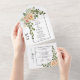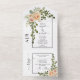 Peach flowers, arch and monogram spring wedding all in one invitation