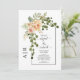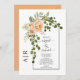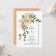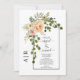 Peach flowers, arch and monogram spring wedding invitation
