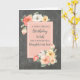 Pretty and thoughtful greeting card for your daughter in law's birthday with peach pink and white spring flowers, rustic chalkboard pattern and hand lettered style text.