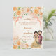 Peach flowers Indian couple wedding invite templat