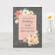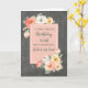 Pretty and thoughtful greeting card for your sister in law's birthday with peach pink and white spring flowers, rustic chalkboard pattern and hand lettered style text.