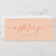 Simple and elegant minimalist script peach fuzz gift certificate. This elegant script gift certificate fits perfectly within a standard #10 business envelope. Perfect for your brand and business.