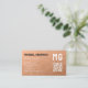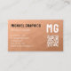 Peach geometric mesh pattern QR code Monogram Business Card
