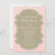 Personalised baby shower invitations in rustic and chic coral orange pink gingham pattern and country burlap pattern. Customisable with your text, contact us to request a colour change.