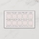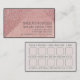 This business card has a modern peach glitter design with sans serif typography, and features a classic reward system on the back for returning customers to receive something, i.e. discount, free item, etc. You can fill in the details with your company name, services, address, phone number, website, hours, and reward system on the back.