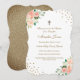 Peach Gold Floral Confetti Baptism Invitation