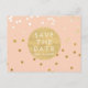 Peach & Gold Shiny Confetti Dots Save The Date Announcement Postcard