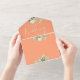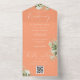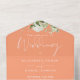 Peach Greenery Floral QR Code Monogram Wedding All In One Invitation