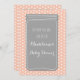 Personalised baby shower invitations in elegant and modern light coral pink, dark charcoal grey and white hearts pattern with a cute mason jar illustration. Customisable with your text, contact us to request a colour change.