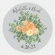 Peach Grey Wedding Spring Floral Classic Round Sticker