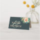 Elegant floral watercolor in shades of peach to orange trimmed with teal to jade green foliage with space provided for guest's name and table number on the front, your names on the back. Change the white colour background to any colour to match your wedding theme. COORDINATING items available in our store to complete your invitation suite ---> http://bit.ly/2VebyjV <---