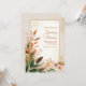 Invite your loved ones to a celebration filled with warm, glowing elegance with this sophisticated botanical scene. The composition features a lush arrangement of peach, terracotta, and deep forest green leaves paired with delicate white flower blossoms. Clusters of shimmering gold stardust are sprinkled across the corners, creating a sense of luminous magic against the soft, warm cream background. A thin, elegant gold frame provides a polished focal point for your ceremony details. This design serves as an exquisite foundation for a wedding invitation, making it the premier choice for a formal fall ceremony, a rustic garden wedding, or a sophisticated thanksgiving-themed gala. These motifs ensure your stationery stands out with an artistic, high-end feel that captures the natural grace of an autumnal landscape from the moment your guests open the envelope.