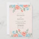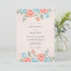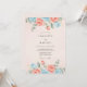 This elegant design features soft watercolor roses in shades of peach and light blue. Delicate green eucalyptus leaves and golden accents decorate the top and bottom of the composition. A pale blush backdrop enhances the romantic and airy aesthetic, making it ideal for a spring or summer event.