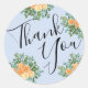 Peach Light Blue Wedding Roses Floral Classic Round Sticker