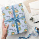 Peach Light Blue Wedding Roses Floral Wrapping Paper