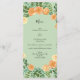Peach Light Green Peony & Rose Floral Wedding Menu