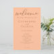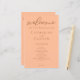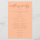 Peach is the new trending colour for summer events. Our sweet peach wedding program features elegant light brown script for a trendy, minimalist event in the afternoon for a feminine bride who loves to stay current and modern.