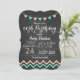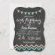 Personalise this elegant, retro peach and mint green bunting flag and chevron pattern stripes vintage chalkboard, chalk, look teen or adult birthday party invitation. Perfect year round for spring, summer, fall, or winter birthday parties. Neutral, trendy design for man or woman, boy or girl. Stylish, classy invite for any adult or teen milestone birthday including Sweet 16, 18th, 21st, 30th, 40th, 50th, 60th, 70th, 75th, 80th, 85th, 90th, 95, 100th birthday.