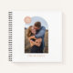 A simple notebook with a modern arch design that doubles as a photo frame. Beneath the photo is space for a family name. In the upper-left hand corner, there is a colourful dot, which includes space for custom text. The back of the journal has a colour coordinated dot pattern. This minimalist notebook would be perfect as a wedding or baby album.