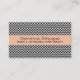 Trendy and stylish Modern Chevron Business Card featuring a zigzag chevron striped background in black and white and a simple peach overlay. This chic and elegant design is easy to customise with the details of your business. Click "Customise It" to find more personalisation options.