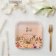 Peach Ombre Watercolor Floral Wedding Paper Plate
