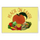 Peach on Earth, Goodwill to all Fruits and Vegetables. Aha, all these years you thought it was "Peace on Earth," etc. OK, that's a thing, too. But if you change the "h" to an "e" you have a totally alternative, punny way to send or say a Christmas holiday greeting that is especially for vegetarians, vegans, and all lovers of healthy fruits and vegetables. Which is just about everybody, if you don't count meat, right? So here is a cute holiday greeting card with the holiday wish on the front, colorfully illustrated by said peach and vegetables, and "Goodwill to all Fruits and Vegetables" inside, in a fun, charming font, accented with a heart and a flourish. Happy Inclusive Holidays!