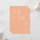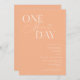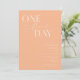 Minimalist wedding rehearsal dinner invitation featuring typography text that says "one more day." The background is peach.
