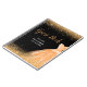 A beautiful peach orange themed elegant watercolor dress gown on a black background with faux glitter at the top and bottom of the guest book.